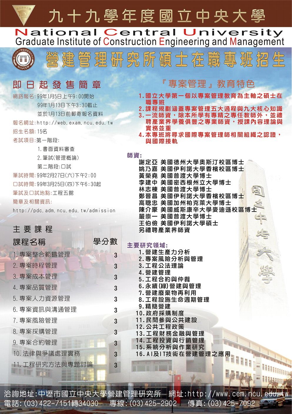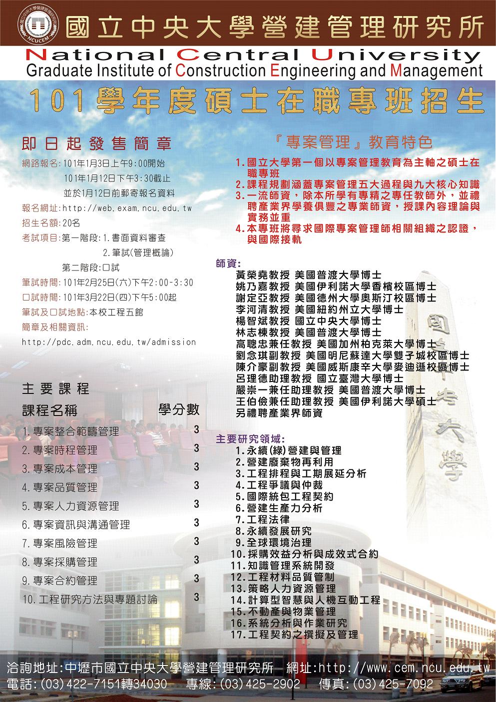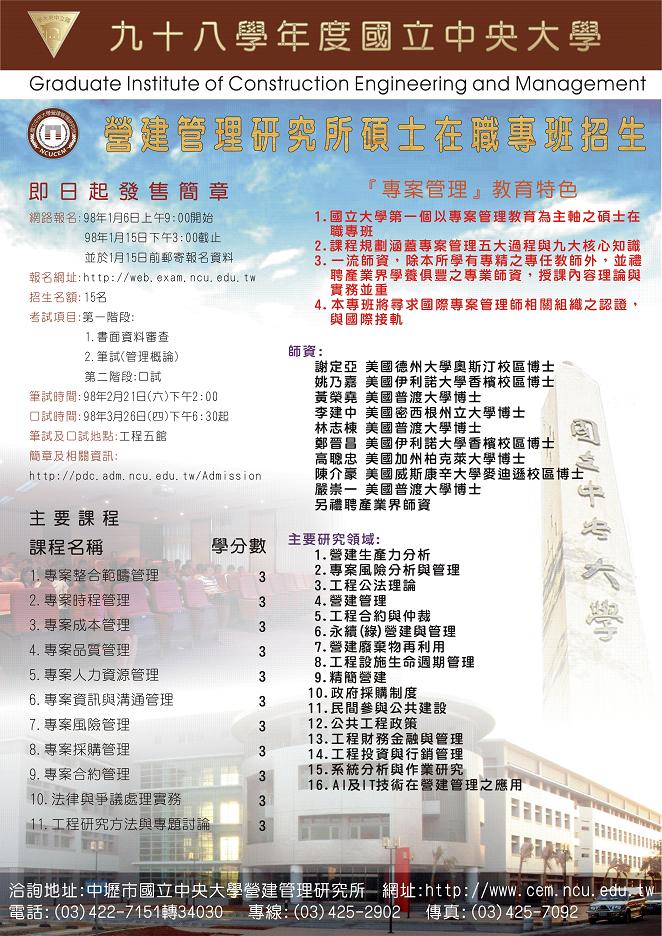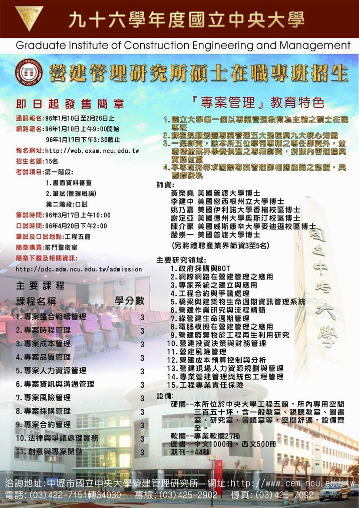 桃園縣中壢市五權里中大路300號 交通資訊 電話:(03)422-7151轉34030或34031 傳真:(03)4257092 E-mail:ncu4030@ncu.edu.tw Copyright (c) 2008 by NCUCEM All Rights Reserved 版權所有